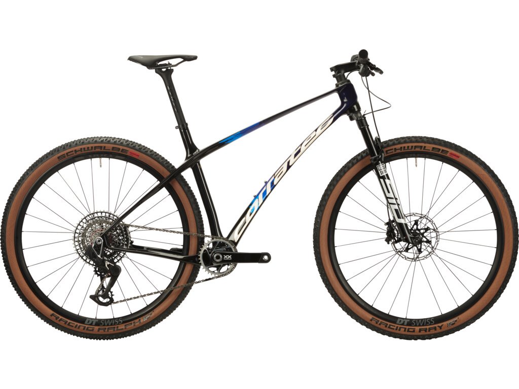 Karbónový rám je vyladený na maximálny výkon a rýchlosť. Vpredu pracuje RockShox SID SL Ultimate (100 mm) – jedna z najľahších a najpresnejších XC vidlíc na trhu. Kolesá DT Swiss XRC 1200 Spline s vnútornou šírkou 25 mm a špičkovými plášťami Schwalbe Racing Ralph/Ray posúvajú akceleráciu aj ovládateľnosť na najvyššiu úroveň.