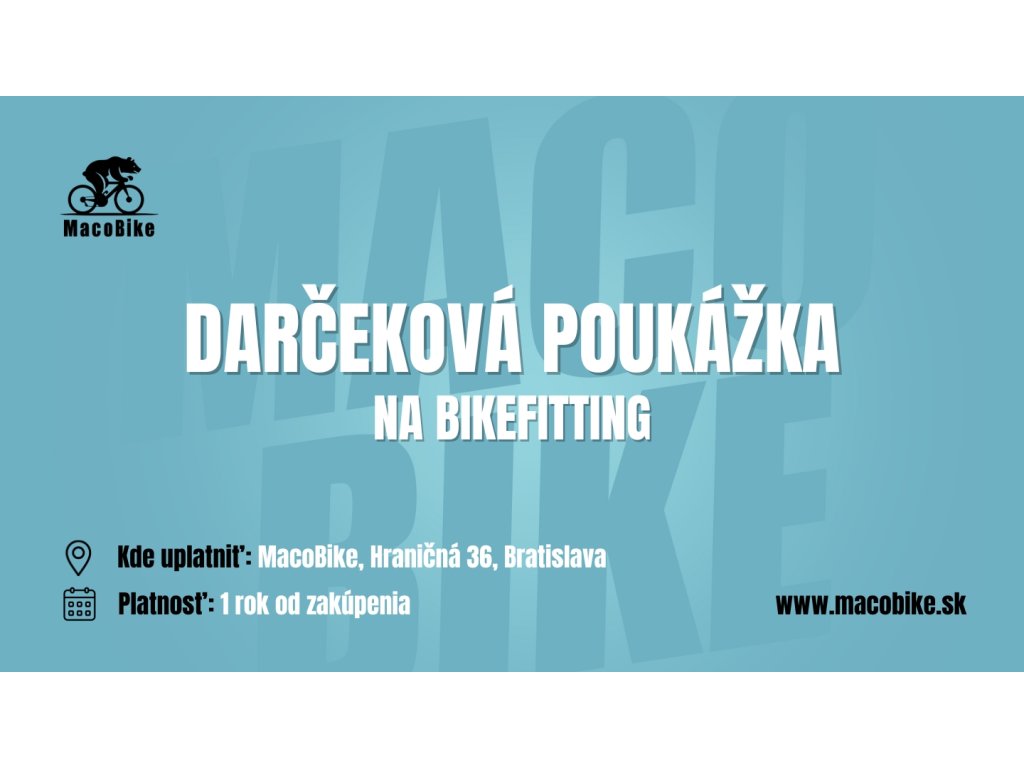 Hľadáte darček, ktorý má skutočný význam pre každého vášnivého cyklistu? Naša darčeková poukážka na profesionálny bikefitting v MacoBike je ideálnou voľbou pre tých, ktorí chcú jazdiť efektívnejšie, pohodlnejšie a bez bolesti.